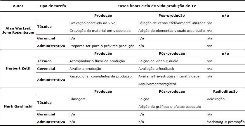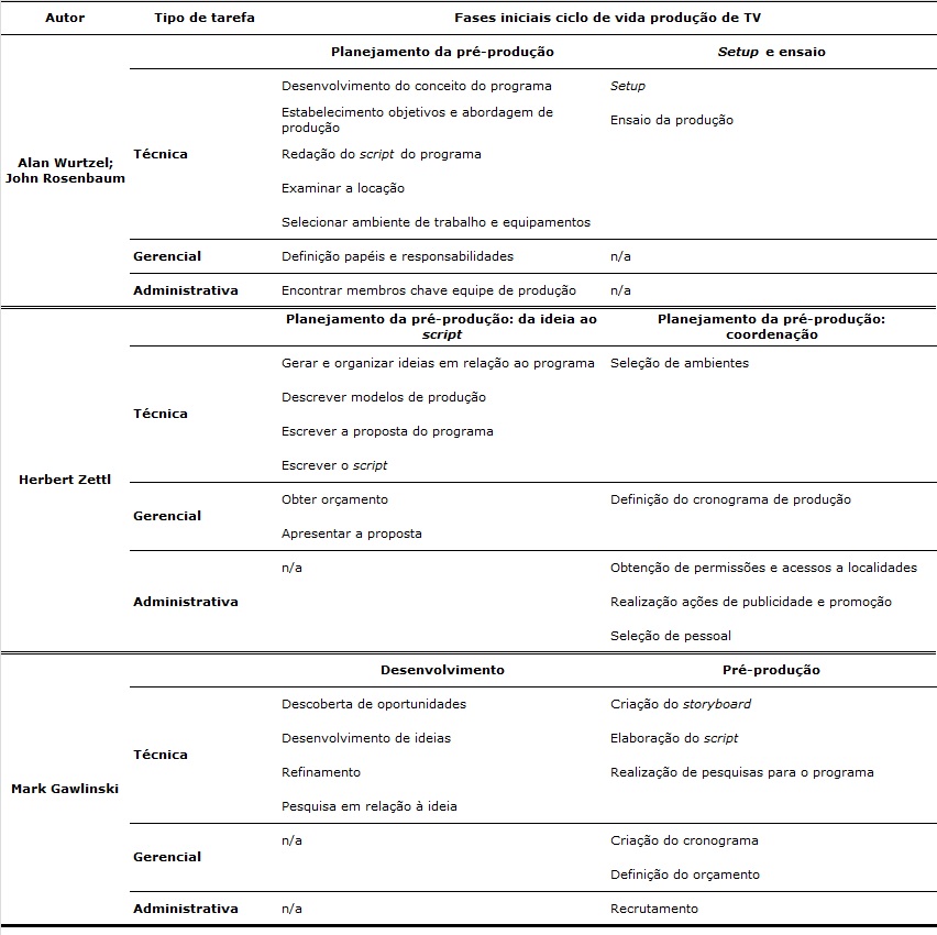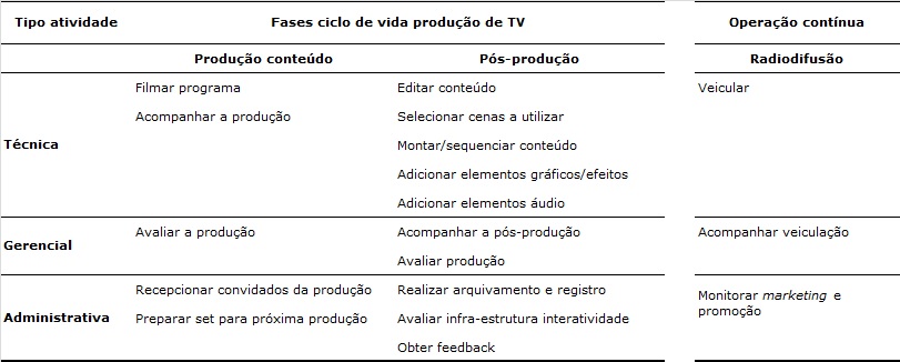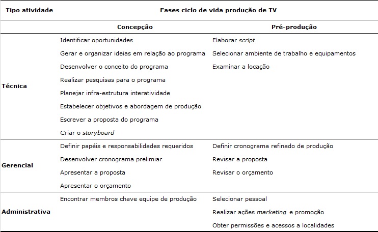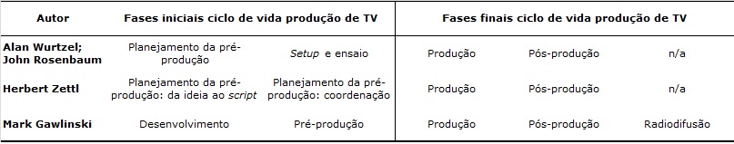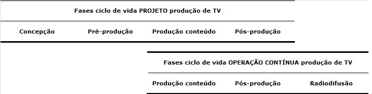 estudos de produção de televisão, ciclos de vida, gerenciamento de projetos.Resumo